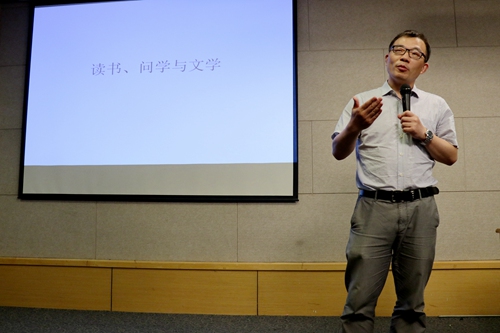 最后,汪院长开展了题为《读书、问学与文学》的讲座。他和大家一共讨论了三个命题:一、读书好。由于电子产品的出现与发展,国人读书的热情愈渐下降,汪院长希望大家能辩证地看待“书呆子”这个群类,明白读书之好。二、好读书。通过引用鲁迅的《读书杂谈》,汪院长指出了职业的读书与嗜好的读书的区别,并希望文院学生能主动阅读,在阅读中找到与生命结构相近的东西。三、读好书。汪院长希望大家都能培养最基本的文本鉴别力,读古今中外的名家名篇、读那些被社会遗忘的经典。汪院长还讲述了自己对闻见、知识、学问、智慧、德行这五个“问学层次”以及技能、知识、态度与价值观这四个素养的理解,简述了他对文学的看法。