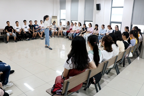 然后,团委书记、18级新生辅导员胡萱对文学院的主要学生组织做了简要介绍。文学院的各个学生组织及社团极具特色,是新生丰富校园生活、锻炼个人能力的良好平台。胡萱老师介绍完毕后,文学院团委、学生会、社团联合会、新闻中心、学生科技协会等五大学生组织的负责人依次上台进行了宣传讲解。负责人们的精彩宣讲在新生中引起了热烈反响,现场欢笑连连、一派热闹。