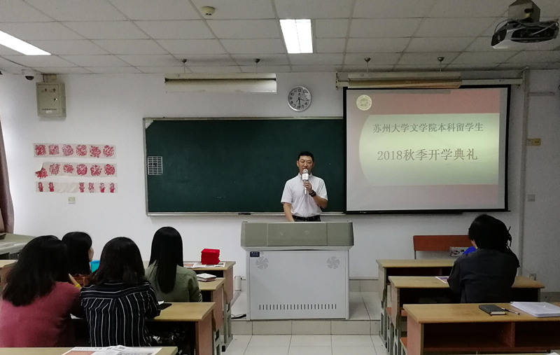 仲秋之月,秋凉气爽。苏州大学文学院迎来了2018年秋季学期本科留学生开学典礼。9月21日下午三点,文学院本科留学生开学典礼在东教楼405教室如期举行,活动由文学院海外教育中心主任陶家骏老师主持。