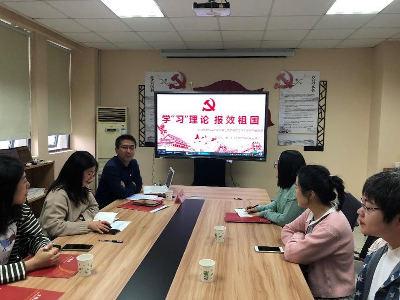 其中文学院研究生第三党支部共有18级硕博党员16名,支委成员有徐婷、向宁宁、张琳琳3人构成,其他支部党员包括5位博士、8名硕士。支部成员在专业学习和生活工作等方面,都取得了突出的表现,支部党员中有担任研究生会主席,有专业联系人,在2018年度和2019年度的学业奖学金中,有国家奖学金、特等奖学金和一等奖学金数人,在文学院研究生群体中起到了良好的先锋模范作用。文学院研究生第三党支部自2018年成立以来,积极开展时事、政治和理论学习,以及党日活动。在支部学习方面,支部成员能够做到每日打卡,重点学习。在初心使命、主题教育方面,也开展了多种教育实践活动,如参观革命历史博物馆等。随后,阴书记又对其他单位和学生的情况进行了详细介绍。