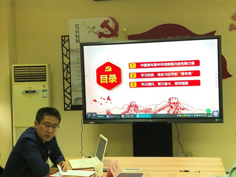 由此,吴江书记分别以“中国青年是中华民族复兴的先锋力量”、“学习经典、领会习近平的‘青年观’”、“牢记嘱托,努力奋斗,报效祖国”为三部分内容展开论述,对学生进行主题教育。并且在最后对于文学院研究生第三党支部所有同学给予殷切的盼望:“衷心希望新时代各位党员青年积极拥抱新时代、奋进新时代,让青春在为祖国、为人民、为民族、为人类的奉献中焕发出更加绚丽的光彩!”