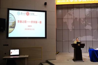 9月12日9:00,苏州大学文学院2023级本科生开学典礼暨大学第一课在金螳螂商学院报告厅(梦溪厅)隆重举行。