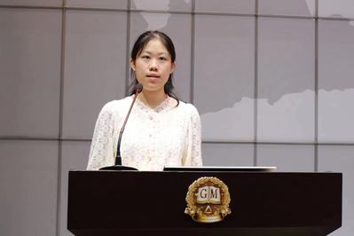 随后,2021级学生代表沈晁君同学上台发言。沈同学用三个关键词概述了自己在文学院度过的两年:责任、成长、奋斗。背负着“受教育、长才干、做贡献”的伟大责任,文院学子要积极把握机会提升自我,以焚膏继晷的决心穷兀兀之年,怀揣隙穴之窥的精神砥砺奋斗,在文学院成长为更好的自己。