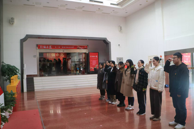 活动伊始,支部党员在面向党旗,高举右拳,再次庄严宣誓“我志愿加入中国共产党……随时准备为党和人民牺牲一切,永不叛党”。苏州革命博物馆庄重肃穆、气势恢宏,一件件实物、一张张照片、一行行文字,生动记录着革命先辈的伟大事迹和中国共产党在苏州的光辉历程。短短80个字的入党誓词,字字千钧、句句铿锵,响彻在苏州革命博物馆大厅,激发起每一位党员昂扬奋进的力量。