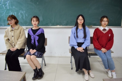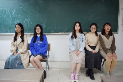 老师讲解毕,学生会副主席刘洁予针对“站姿”“坐姿”“引客”“倒水”四方面对有进文学院礼仪队意愿的同学进行了选拔。