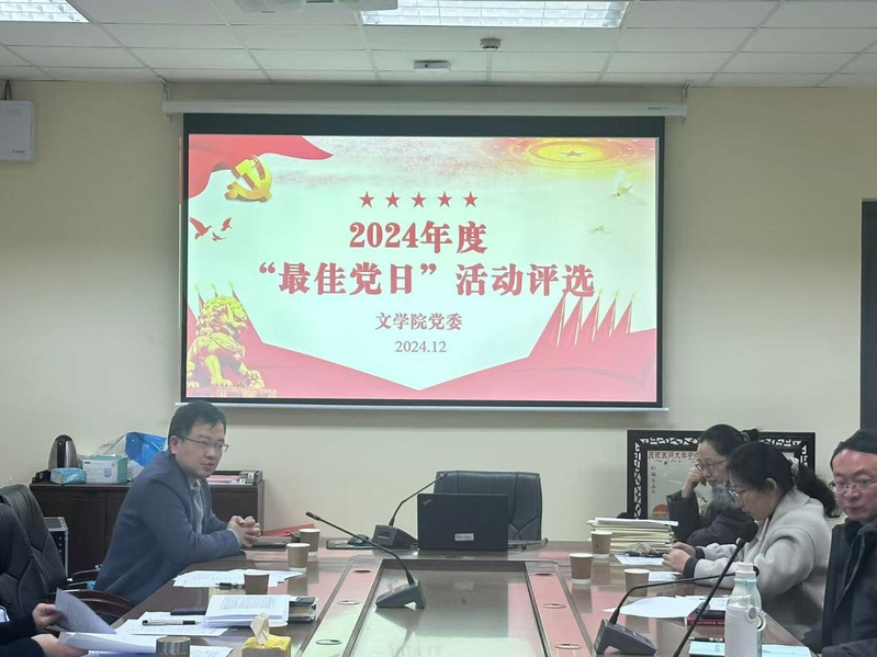 为深入学习贯彻习近平新时代中国特色社会主义思想和党的二十届三中全会精神,不断提高组织生活质量和基层党建工作质量,激发各党支部创新活力,推动党建工作向纵深发展,文学院党委于2024年12月11日召开了年度“最佳党日”活动评选暨党支部书记项目结项评议会,特邀学院原党委书记王六一与退休支部书记、原学院副院长黄镇伟参会点评。会议由党委书记宋清华主持。