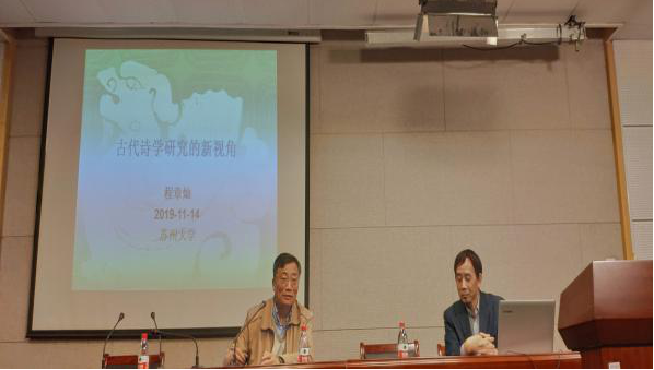 十一月十四日晚19:30,南京大学程章灿教授应邀来到苏州大学文学院“仲联学术讲坛”,进行了题为《古代诗学研究的新视角》的学术报告。