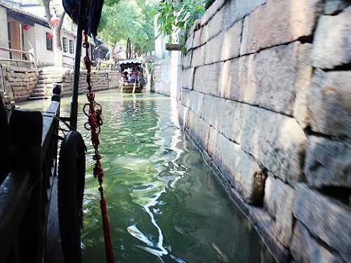 公交车时而平缓驶过,时而颠簸前行,漫漫长路,�直古镇真是个些许远的地方。的确,她位于苏州的东南角,倘若我们过多的停留在苏州的古典园林上,或许会很轻易的让“�直”这两个字眼从我们的视线中溜走。�直并不如苏州园林的秀美,典雅,也没有神州第一水乡的周庄名气那么大,�直真有些养在深闺人未识的味道,走进�直,给我的第一感觉是她的娇小。河道狭小,只能容两艘游览船并行通过。人家尽枕河是苏州古镇的一大特色,河道两岸的人们可以尽兴的谈天,一个在这头,一个在那头,别有一番风味。�直的桥也多,而且是各式各样的,在我看来不带重的,有平直的桥,也有拱形的桥,各具特色,这里的水依旧发挥着她的功效,有幸看到一对女孩走下石阶,将盆中的衣服取出浣洗,更看到一位老奶奶走到河边,双手蘸了几把水,洗去脸上的污垢,开始新的一天的生活。