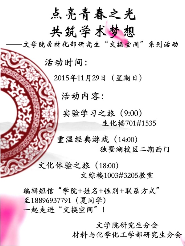 点亮青春之光,共筑学术梦想――文学院&材化部研究生“交换空间”系列活动