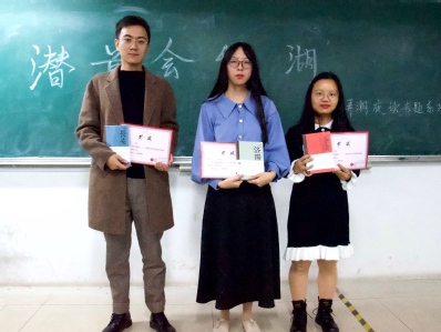 最后,社长潘家仪同学对本次夜读活动做出总结,并向在活动中发言精彩的同学颁发了奖状。颁奖过后,全体参与夜读的同学上台合影留念。