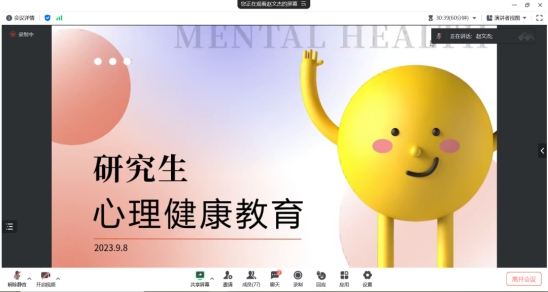 为帮助2023级研究生新生正确认识心理健康、顺利过渡到研究生阶段的学习生活中,苏州大学文学院特举办“心理健康润心课”系列专题讲座。此次系列专题活动的第一部分,即“心悦青春,预见未来”——文学院研究生心理健康专题教育讲座暨新生答疑茶话会于2023年9月8日19时线上举办。由文学院研究生会主席团成员刘音孜主持。
