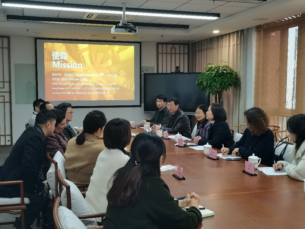11月25日中午,在濛濛细雨中苏州大学文学院孙宁华书记率队前往苏州工业园区海归人才子女学校(下简称OCAC)访问,与OCAC领导洽谈实习生合作事项。参加本次会谈的有孙宁华书记、苏州大学国际合作交流处朱履骅副处长、汉语国际教育教研室主任陶家骏副教授、汉语国际教育硕士专业教学主任周国鹃副教授、汉语国际教育硕士专业主任吉旭博士、省级大创项目“苏州地区国际学校中文教育现状调查研究”课题组孙禹和徐清扬同学,OCAC出席会谈的有中锐集团教育副总裁、OCAC总经理朱捷、中方执行校长田敏、外方校长Renata Mcfarland博士、中方副校长朱虹、小学部校长俞云花、小学部副校长缪玲玲、小学部副校长Jeremiah Chua、办公室主任凤良浩等。