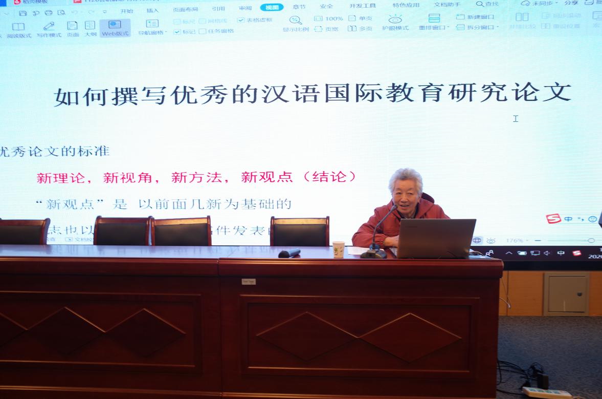 随后,陆教授结合多年指导硕士生的实践经验,向师生们分享了关于如何撰写优秀的汉语国际教育研究论文的许多真知灼见。