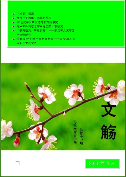 四月的江南总笼罩着��细雨,空气中弥漫着青草掺和泥土的香味。“沾衣欲湿杏花雨,吹面不寒杨柳风”。又是“杏花吹满头”的春日,又是全新一期的《文觞》。