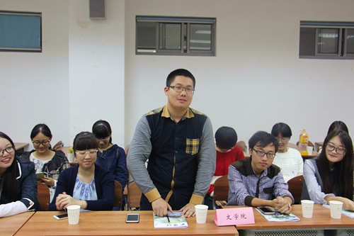 在会议的第一阶段,来自三个学院新闻中心的各部门部长依次对自己部门的职能进行了介绍。首先进行介绍的是文学院新闻中心,办公室、记者部、美编部部长依次发言,他们详细讲解了自己部门的结构和特色。接下来,政治与公共管理学院学生新闻中心、电子信息学院新闻中心的各部门部长也做了精彩的介绍。三个学院新闻中心的部门构成存在差异,各部门名称、职能也各具特色。