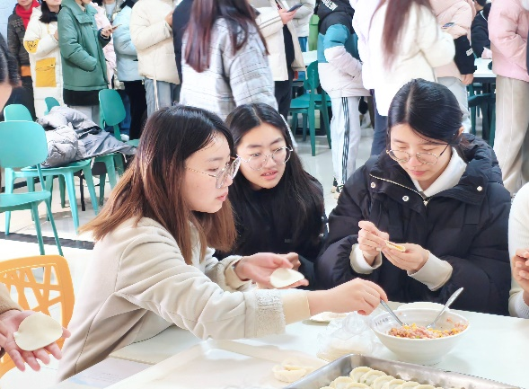参加此次活动的还有学院党委书记宋清华、党委副书记阴浩、院长助理陈昌强、裘兆远、辅导员陆亚桢、丁小珊以及各年级学生代表,师生们洗净双手,兴致勃勃地卷起袖子,小心翼翼地摊开饺子皮,精心包裹着各式各样的馅料,灵巧地捏合褶皱,师生欢聚一堂,共同感受冬至佳节所带来的欢乐与温馨。