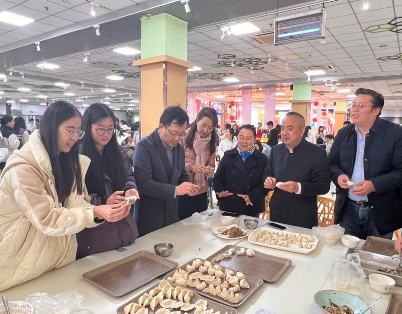 校党委常委、副校长查佐明老师亲临现场,亲切慰问文学院师生和忙碌的现场工作人员以及食堂师傅们,用“暖暖胃、暖暖身、暖暖心”给现场师生送上节日的祝福,并和同学们一起包饺子,聊家常,话冬至。