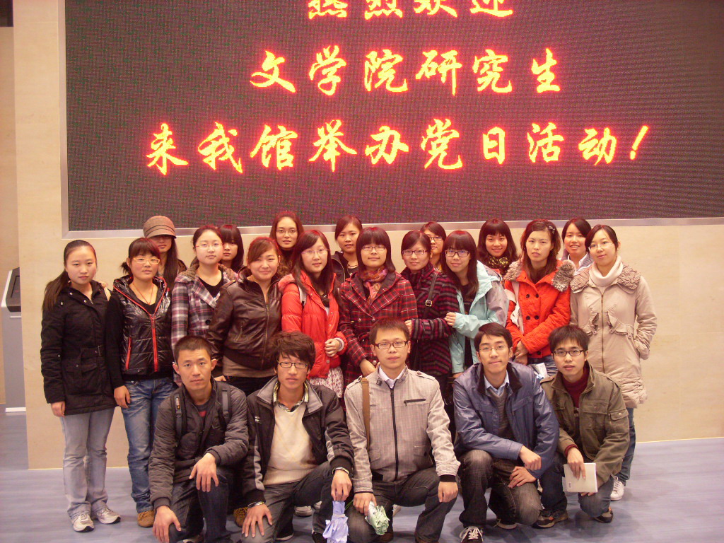 16日晨,同学们各自前往位于东吴桥下的苏州大学博物馆集中。微微的细雨并没有减弱大家的热情。在博物馆前,10级研究生二支部书记孟雅君同学先简要地向大家介绍了深入拓展“结对互助活动”的主要内容:即“五个一”,分别为“互荐一本好书”、“互荐一部电影”、“一次结伴出游”、“一项才艺学习与展示”和“一次共同经历”。此次参观苏州大学博物馆便是双方联合组织的“一次结伴出游”。这样新颖独特的交流形式,也是为了让大家更好地加入到“争先创优”的大队伍中,在共同的足迹中寻找彼此的闪光点。