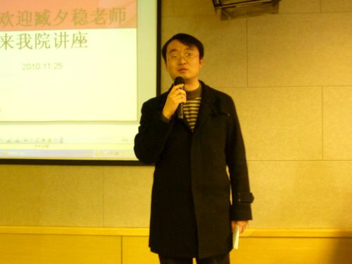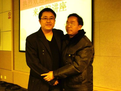 在互动的环节中,同学们十分关心臧老师现在的身体健康状况,同时也对自己感兴趣的细节进行了提问,臧老师都进行了详细的回答。值得一提的是,问答环节中,一位特殊嘉宾接过话筒,进行了自我介绍。原来这是一位名为“西南才子”的网友,他曾经与臧老师在网上进行过深入的交流,由于在臧老师的博客中了解到今天臧老师在苏州大学有讲座,于是特地赶来见臧老师一面。两人初次见面却像多年知己,这位网友深情地握住臧老师的手,当时的场景让在场的同学无不为之动容。