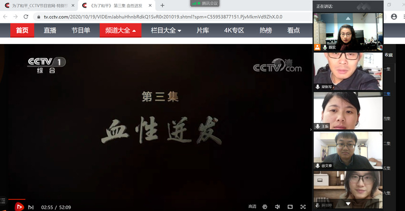 应我校党委教师工作部的号召,我院于11月27日组织部分青年教师在线观看了《为了和平》纪录片的第三集《血性迸发》。我志愿军空军在各方面都处于劣势的情况下,顽强打出了中国军人的气势,震慑了敌人,取得了一些胜利。志愿军战士们发扬一不怕苦、二不怕死的战斗精神,以愈战愈勇的旺盛斗志和高昂士气,不畏强敌、舍生忘死,敢于斗争、敢于胜利,顽强地同敌人血战到底,创造出惊天地、泣鬼神的战争奇迹,打败了“钢多气少”的敌人,打出了新中国的国威和人民军队的军威。这种以少胜多、以弱胜强的精神和斗志,深深震撼并鼓舞着各位老师。
