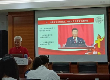 在“文化自信”方面,周伟虎老师指出,习近平新时代中国特色社会主义思想中的“四个自信”以“文化自信”为本质,这是基于合规律性与合目的性辩证统一下对时代课题的深刻把握;在“中华优秀传统文化”方面,周老师援引习近平总书记在2023年6月2日在京召开的文化传承发展座谈会上的讲话,指出中华文明有五千多年的深厚基础,把马克思主义基本原理同中国具体实际、同中国优秀传统文化相结合,这是中华民族坚定文化自信与文化自强的底气,更是推进文化建设长足发展的不竭动力。