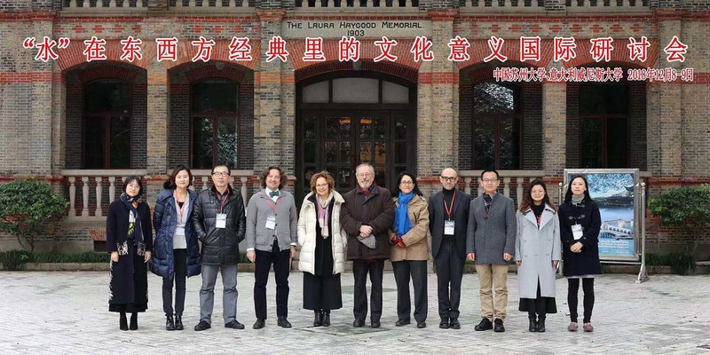 2018年12月9日,由苏州大学与意大利威尼斯大学联合举办的“‘水’在东西方经典里的文化意义”(The Cultural Significance of Water in Eastern and Western Classics)学术论坛在苏州大学本部红楼201室圆满举行。此次论坛,系苏州大学与威尼斯大学系列学术合作项目之一,展示了中西双方在学术与文化上进一步交流与相互理解的可能。 参加此次研讨会的相关专家学者有:意大利威尼斯大学副校长李集雅教授(Tiziana LIPPIELLO)、新加坡南洋理工大学Andrea NANETTI副教授、意大利威尼斯大学Carlo NATALI教授、法国国家科学研究中心高级研究员Cristina VIANO、意大利威尼斯大学Attilio ANDREINI、以及苏州大学学术委员会主任王尧、苏州大学文学院季进教授、汪卫东教授以及文学院的张珊、张蕾、臧晴等青年教师。 会议开幕式由苏州大学季进教授主持。苏州大学学术委员会主任王尧教授在致辞中表示,“水”在东西方经典里均有着丰富的文化意义,挖掘其中潜在的意义,一方面有利于与会双方加深对彼此之间文化的了解,同时也有利于双方更加全面透彻地观照自己国家的文化。威尼斯大学副校长李集雅教授(Tiziana LIPPIELLO)在致辞中则表示,苏州和威尼斯自古都是水城,这次关于“水”的研讨会在苏州大学召开,十分相得映彰,期待这次会议将会产生思想碰撞与文化交流。