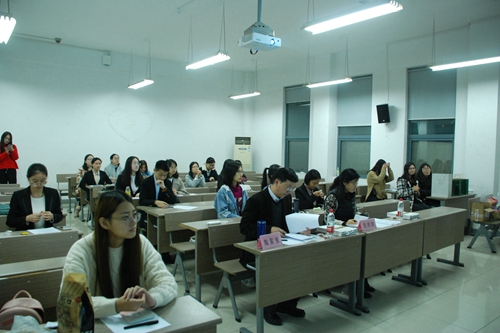 首先进行的环节是选手风采展示,第一位展示的是尚宁同学,她的落落大方为此次大赛开了一个好头。陶老师对她的清晰整洁表示了肯定,同时也提出了一些改进意见,建议她增加求职目标及英语简历。紧接着,陈龙玉、张文君、吴颐等同学借助ppt,从简历的色彩、内容等方面清晰地介绍了各自设计的简历。评委老师都有针对性地做出了点评,肯定了运用项目符号的亮点,指出了不注意大小写的问题,强调了细节的重要性。短暂的休息过后,方礼蕊、向仁苗、王茜同学分别登台,阐述了自己的设计理念,两位评委老师也都提出了宝贵的建议。