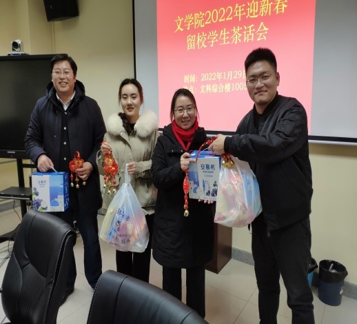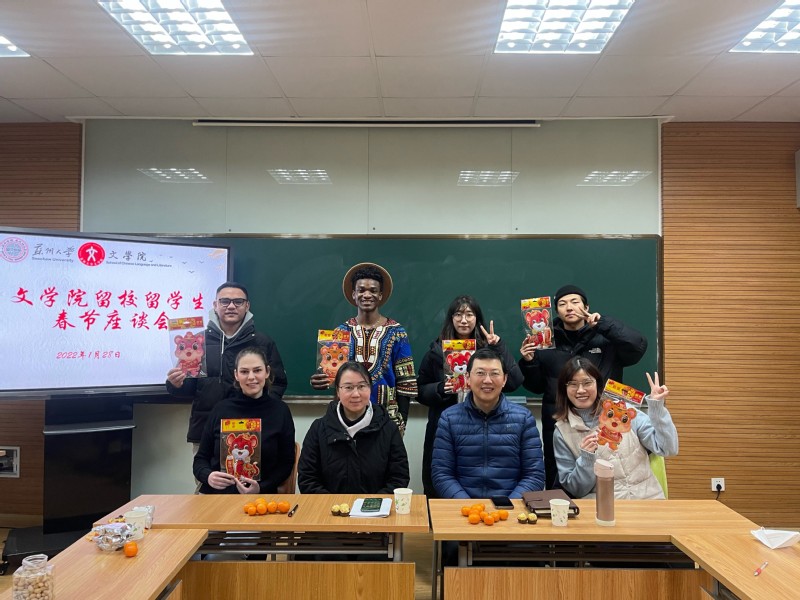 2022年1月28-29日,文学院、唐文治书院2022年迎新春留校学生茶话会分别在天赐庄校区和独墅湖校区举行,出席本次活动的有文学院党委书记宋清华,党委副书记阴浩、学工办主任纪金平、唐文治书院办公室主任胡月华、海外教育中心主任陶家俊、留学生辅导员薛羽婷以及学院和书院留校的本科生、研究生和留学生。与会师生一起畅谈留校生活,喜迎虎年新春。
