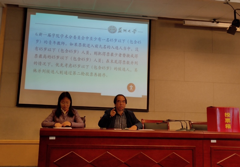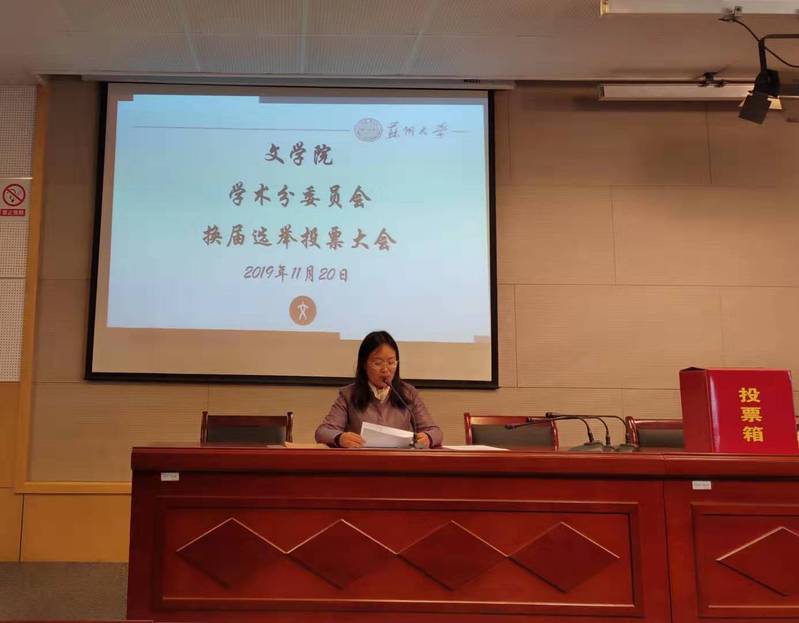 11月20日下午,文学院学术分委员会换届选举大会在文科综合楼1005-5339室举行,文学院全体高级(正高、副高)职称教工(包括思政、行政管理人员)参加会议。孙宁华书记主持会议。此前,院党委会和党政联席会议先后认真讨论了《文学院学术分委员会换届选举实施细则》初稿,并在选举大会现场宣读、审议通过。