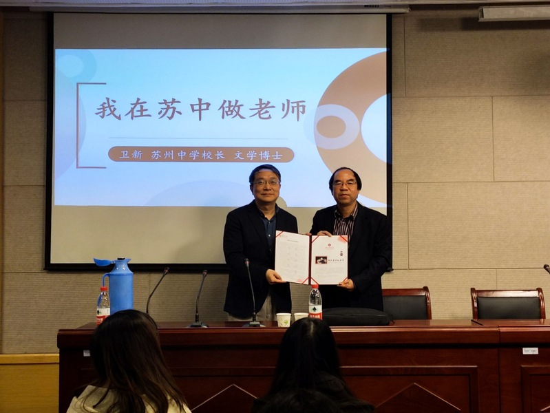 讲座开始之前,曹炜院长对卫新校长进行了简短介绍,并向卫校长授予“东吴语文教学讲坛”纪念证书。