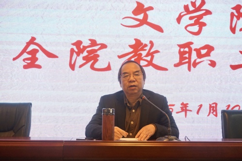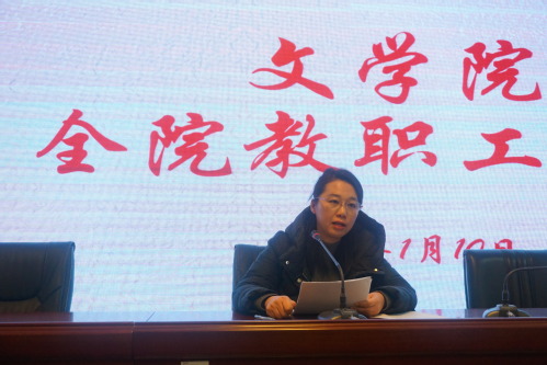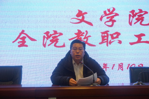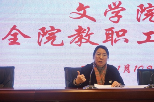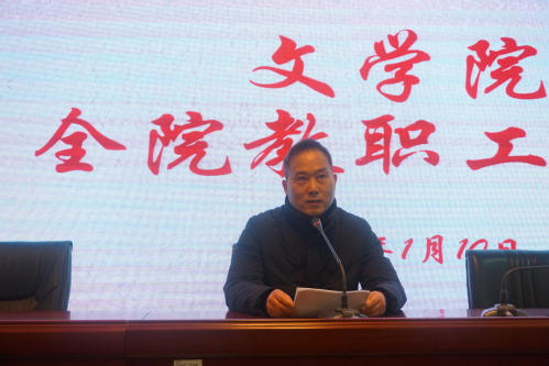 2025年1月10日上午,文学院全院教职工大会在5339报告厅举行。会议由院党委书记宋清华主持,文学院全体教职工出席了本次会议。大会内容主要是学院领导班子及领导干部述职述德述责述廉民主测评会,并进行年度考核。