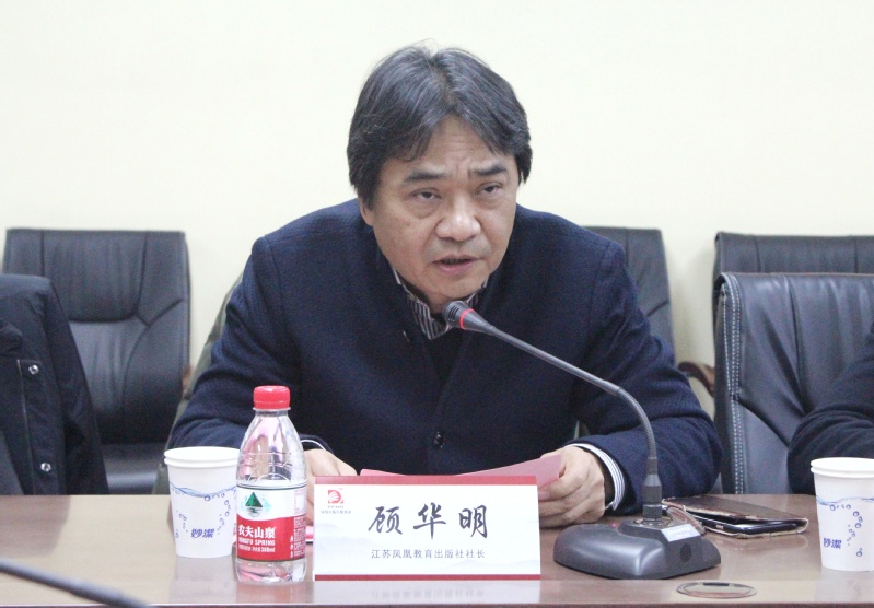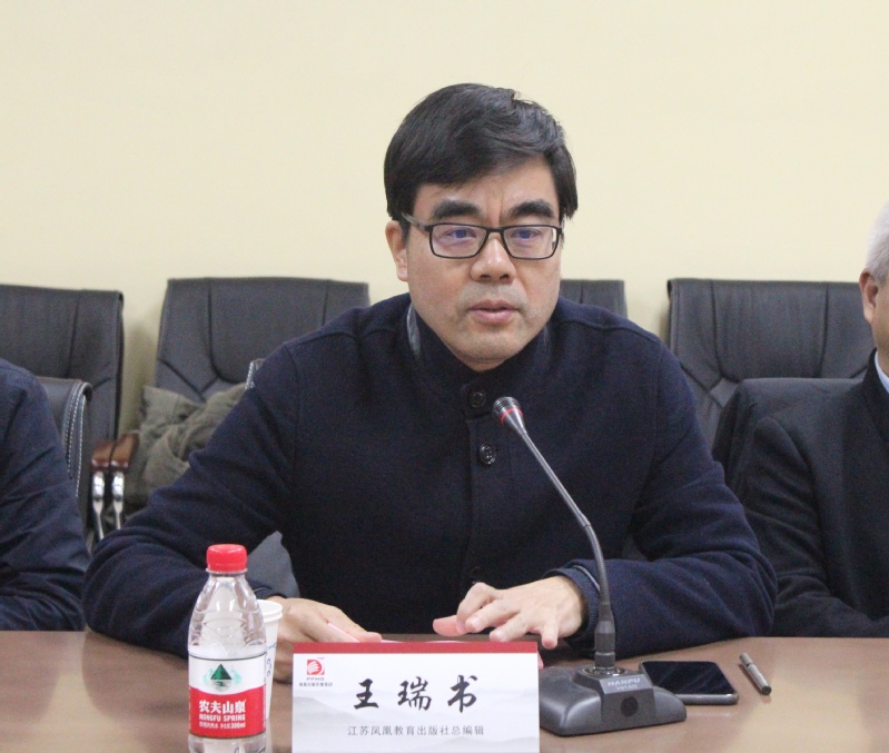 江苏凤凰教育出版社总编辑王瑞书致辞。他指出,苏州大学文学院与苏教社的友谊由来已久,从钱仲联先生开始,一代代的苏大学者见证了苏教社的成长,并为其发展做出了重要贡献。王瑞书对先贤们的贡献表示感谢,同时也表明了对双方未来合作共赢的信心。