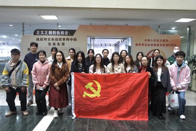 随后,大家一同前往苏州大学本部图书馆,参观“正义之剑的执柄者:战后对日本战犯审判中的东吴先贤——纪念中国人民抗日战争暨世界反法西斯战争胜利80周年”主题展。该展览以远东国际军事法庭审判历程为主线,聚焦东吴大学校友在战后对日本战犯审判进程中扮演的关键角色。透过珍贵的历史照片、庭审文献与人物手记,展览生动还原了先贤们在复杂的国际环境中,如何克服重重困难,为捍卫民族尊严与人类正义而奔走呼号。从他们挺身而出的时代背景,到其卓越工作对重塑战后秩序的深远影响,每一段记述都铭刻着他们对和平的坚守与对邪恶的不屈。在这场与历史的对话中,师生们凝神驻足,深刻体会到东吴先贤“以正义为剑,护家国安宁”的精神内核。他们所践行的,不仅是“养天地正气,法古今完人”的校训精神,更用行动向世界宣告了一个颠扑不破的真理:正义必将战胜邪恶,而捍卫正义的勇气与智慧,是穿越古今、永不褪色的精神遗产。