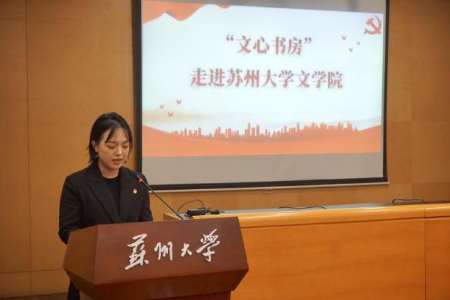 党日活动的最后一站聚焦思想交流与红色传承,在天赐庄校区红楼115室举行了座谈交流会暨赠书仪式。交流会围绕苏州市委党史工办“文心书房”红色阅读品牌与苏州大学文学院党支部互联共建展开。