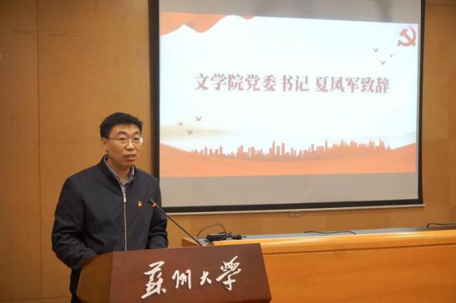 夏凤军在致辞中对苏州市委党史工办通过苏大校友唐崇侃烈士这一重要纽带,将文心书房的相关活动送至文学院表示感谢。他认为,本次活动以“东吴先贤”“英烈精神”为核心,充分利用身边的红色资源,打通历史与现实的联结,将党史学习教育的常态化长效化要求转化为真切的实际行动。他希望党员同志们深入感悟先贤英烈的精神,既要做党史的“学习者”,更要充分发挥文学院师生的专业特长,在做好党史“记录者”的同时,进一步做好“创作者”和“传播者”。