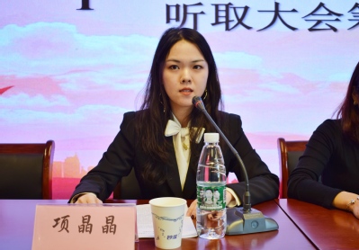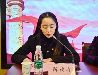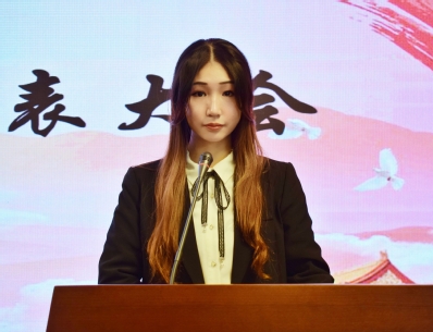 苏州大学学生会主席团代表陈晓冉同学进行发言,她总结了学生会在过去一年的工作情况并提出了对学生会未来工作的期望。