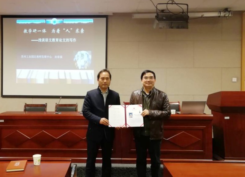 讲座开始前,文学院副院长周生杰教授对孙春福教授的到来表示热烈的欢迎,并向孙教授授予“东吴语文教学讲坛”纪念证书。