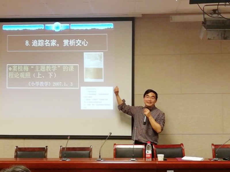 接下来,孙教授具体阐述了“科教研论文的构篇论述”。他从叶圣陶文章结构“球形”说的角度作了旁征博引的分析论证,极富条理性和逻辑性。孙教授以自己的一篇学术论文《你是否在剪掉孩子的一只翅膀》为引,点出了语文教育的关键在于为着“人”求索,即教育的本真意义不仅在于知识的传授,更重要的是培养完整的人。同时,孙教授也展示了自己在语文教育论文写作中的心路历程和阅读书目,道出了读书对于教师发展的重要意义。