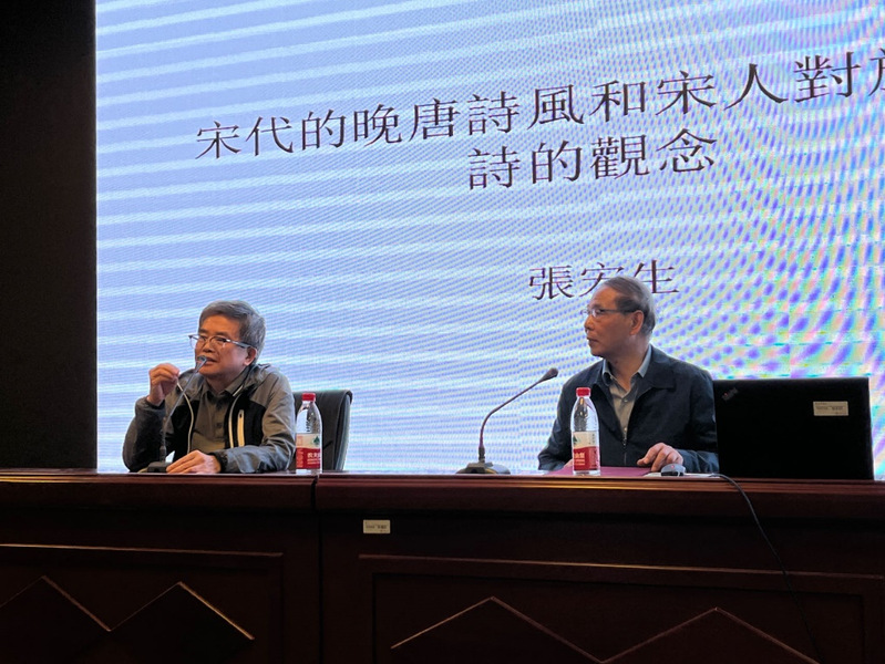 讲座中,张宏生教授从高棅“四唐说”的问题谈起,指出“晚唐”作为一个在时间、文体、风格、价值等多个层面上带有复杂性和开放性的概念,在宋代诗学进程中是被重点关注和讨论的。接着,张教授由宋初三体与晚唐诗之关系、欧阳修对晚唐体的看法、江西诗派用昆体功夫造老杜浑成之境、江湖四灵与晚唐体、叶适对四灵的评价、方回对中晚唐诗的分割等多个话题,递进式地展开了对宋代晚唐诗风和宋人对晚唐诗观念的论述。讲座对宋代诗人学诗的典范和阶梯、古代文人的创作心理、文学史中强势人物对文学发展的影响、文学创作的现场性、文学创作与理论总结之间的关系等诸多问题都有深刻的思考和精彩的阐发。讲座生动风趣,中间亦穿插涉及张教授在海外汉学、女性文学、清代词学等方面的研究案例与心得,视野宏阔,令人耳目一新,叹为“听”止。