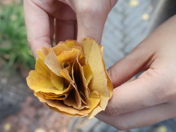 在饱览名胜、浸润文思之后,两名研究生导生特意组织了“捡秋”创意活动,希望大家能够亲自定格秋日美好。同学们三两成群,俯身拾起地上掉落的银杏叶,通过卷曲、粘贴、捆扎,制作成独属于自己的银杏花束,用双手留住了苏州秋天的温度,将转瞬即逝的自然之美,凝结为一份可以永久珍藏的纪念。