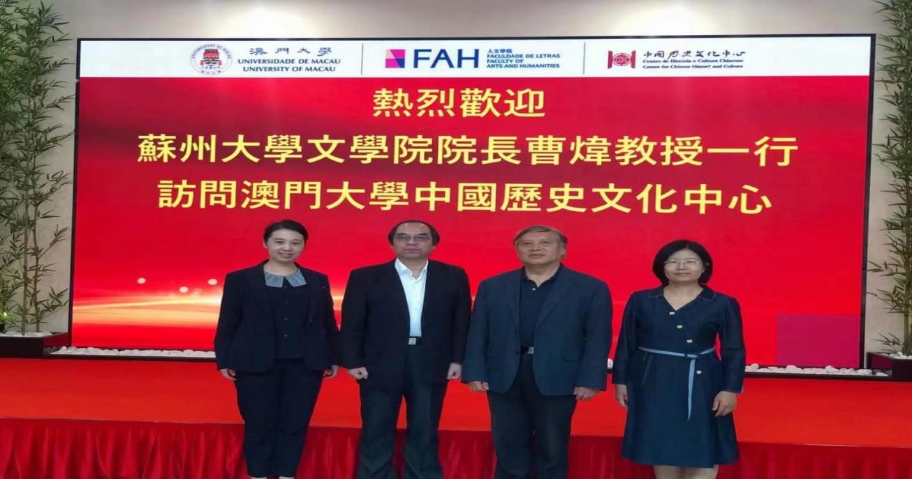 11月13日下午,曹炜院长一行应邀参访澳门大学中国历史文化中心,并与澳门大学历史文化中心主任朱寿桐商讨并确定了我院拔尖基地班学生寒暑假期赴澳门大学开展沉浸学习交流的具体方案。