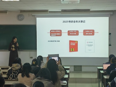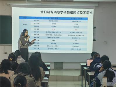 本次讲座的主讲人陈老师来自启航考研,有多年考研复习的指导经验。陈老师首先从近年考研数据分析、学院专业方向解析、考研学习方法等多角度全方位地进行了考研情况的展示,同时列举了部分具体的考研方向、院校、分数,供同学们更直观地了解近年来考研的情况。讲座举办过程中,同学们认真做着笔记,了解更多与考研有关知识的同时对自己未来努力方向更加明晰,收获颇丰。