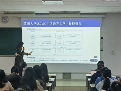 11月15日下午,由文学院学生事务与发展中心举办的苏州大学文学院生涯规划之考研备考复习学院职业指导专题讲座于文综楼1003#3101顺利举行。此次讲座目的是帮助有考研意向的文学院21级同学及对考研感兴趣的22、23级同学更深入地了解考研相关事项。