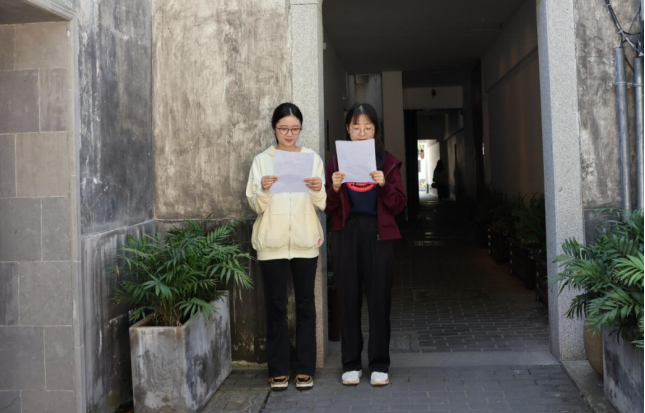 文学院研究生专硕第一,第二党支部在游览完平江路后,举行了与当地文化氛围相融合的艺术表演快闪活动。党支部成员们发挥所长,以歌曲、朗诵等形式诉说对中华优秀传统文化的理解与热爱。专硕第一党支部的李雪莹、罗敏、胡夏倩、专硕第二党支部的汪佳楠围绕传统文化主题演唱多首歌曲。李雪莹演唱《人间乐》,深情祈愿山河平安,万家团圆;罗敏演唱《棠梨煎雪》,清新的曲调道出友人间的深情厚谊;胡夏倩为苏州评弹《声声慢》创作新词,一句“姑苏在我心”表达与苏州的“双向奔赴”;汪佳楠则融爱国之情于一曲《离骚》,于弦歌中尽显蕙质兰心。演出同学经过充分准备,将青年学子的风貌融入古朴街区,以歌声颂扬姑苏之美和中华文脉之盛。
