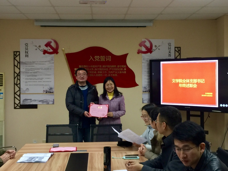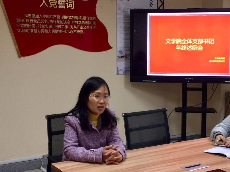 2018年12月26日,苏州大学文学院党委在文综楼1005-5311举行全体支部书记年终述职大会,会议由院党委书记孙宁华主持。