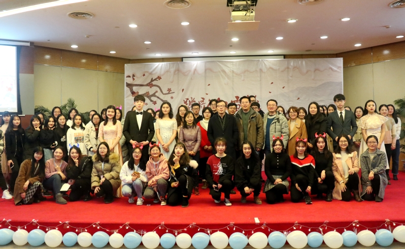 12月20日晚上6:30,由文学院学生会承办的“踏歌白雪后,欲许探春约”——文学院、唐文治书院2018年冬至晚会在炳麟图书馆学术报告厅如期举行。文学院党委书记孙宁华老师,主持工作副院长汪卫东老师,党委副书记、副院长阴浩老师,团委书记、18级新生辅导员胡萱老师,唐文治书院综合办公室主任胡月华老师和文学院17级辅导员陆亚桢老师出席了本次晚会。