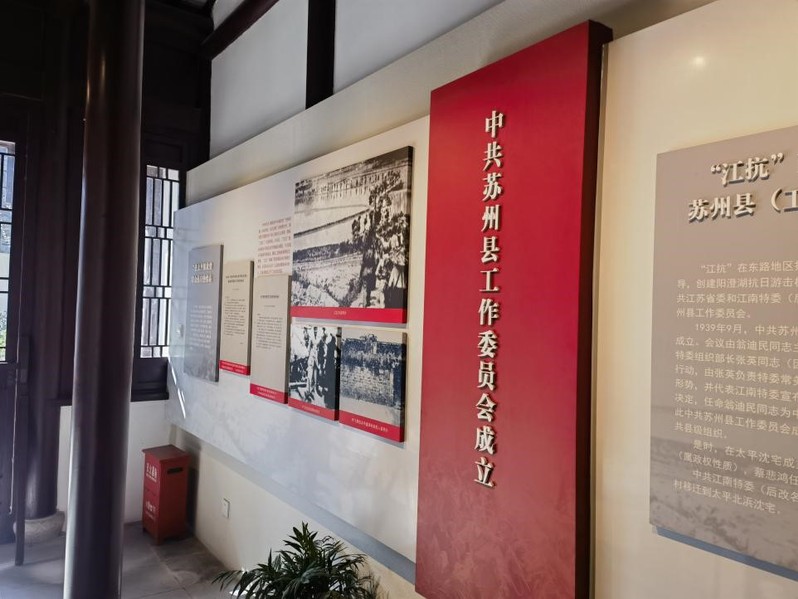 县工委利用沈一林开设的三景苑茶馆为掩护,将这里变为党组织的秘密联络站;同时,县工委以原裕元米行为渠道,为“江抗”东进抗日秘密筹集钱粮等物资。旧址内场景复原展现的是宅内米行、茶馆的历史旧貌。1939年10月,由于国民党的阻挠,苏州县工委和区工委在翁迪民同志的领导下撤离太平。11月,留下的伤病员组成了江南抗日义勇军东路司令部,继续在阳澄湖地区英勇抗日,为建立苏南东路抗日根据地打下了坚实的基础。