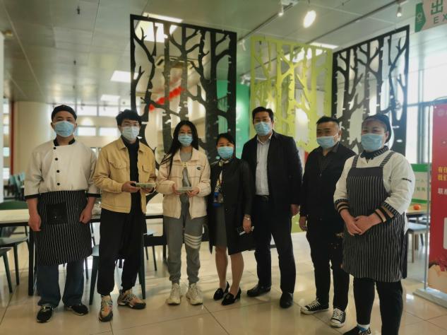 2022年4月4日,文学院及唐文治书院开展了“迎春送温暖”活动。受疫情影响,文学院及唐文治书院有40多人留校。学院积极响应学校的防疫防控部署,院领导高度重视留校学生的学习与生活。秉持着关爱关心学生的原则,学院领导决定在清明节假期期间给留校学生送去青团,表达对留校学生的关怀。文学院宋清华书记与学校食堂负责人联系,自费订制了50份青团,并到现场与学生进行交谈。宋书记强调,疫情防控任务虽然依旧严峻,但我们还是要保障在校学生的安全,同时还要有人文关怀,让学生在学校感受到家的亲切。党委副书记阴浩、唐文治书院辅导员王磊及大堂经理、食堂厨师等一起参与慰问留校学生。