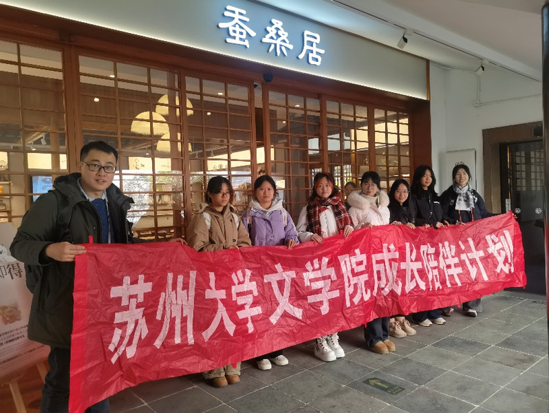 杲杲暖阳笼姑苏,12月14日,苏州大学文学院成长陪伴计划“会文拾光”团队的师生们走进苏州丝绸博物馆,在千年丝绸的光影流转中,开启了一场兼具雅致与深度的文化溯源之旅。专业导师王吉、研究生导生和2025级本科新生共同参与本次活动。