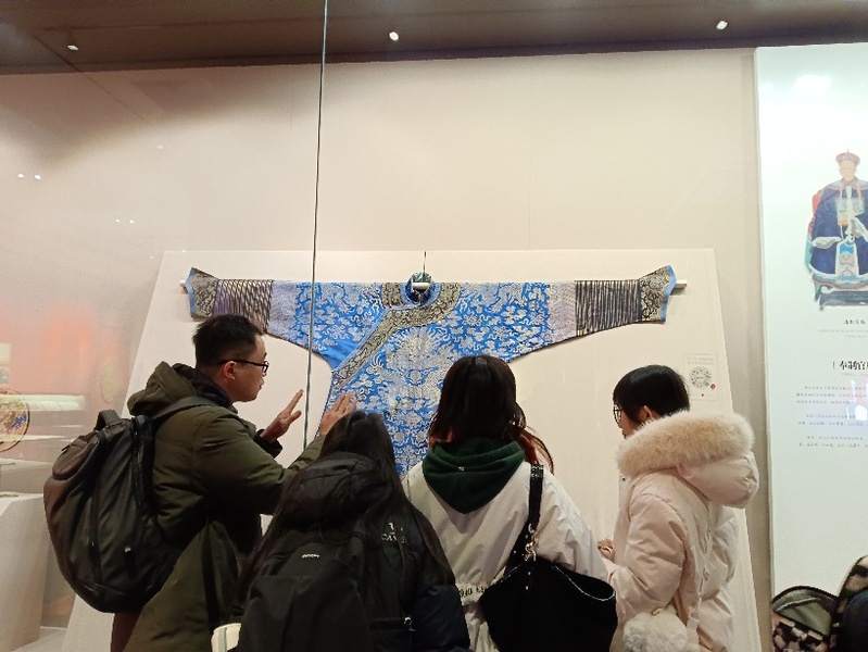 活动启幕,王吉老师引经据典,为同学们徐徐铺展江南丝绸的千年长卷。展厅之内,明清丝绸服饰的细腻纹路、古朴缫丝工具的岁月痕迹,皆静静陈列。师生们驻足流连,轻声探讨,墨香与丝韵交织,氤氲出浓厚的求知氛围。